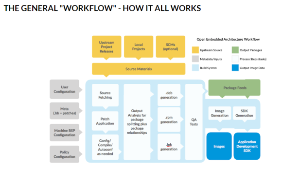 - poky는 위에도 언급했듯이 레퍼런스 배포판입니다! poky는 빌드시스템(bitbake and OpenEmbedded Core) 뿐만 아니라 다양한 metadata를 가지고 있습니다.